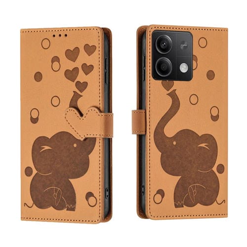 Funda de Cuero con Relieve de Elefante de Dibujos Animados para Redmi Note 13 Pro 5G (Amarillo)