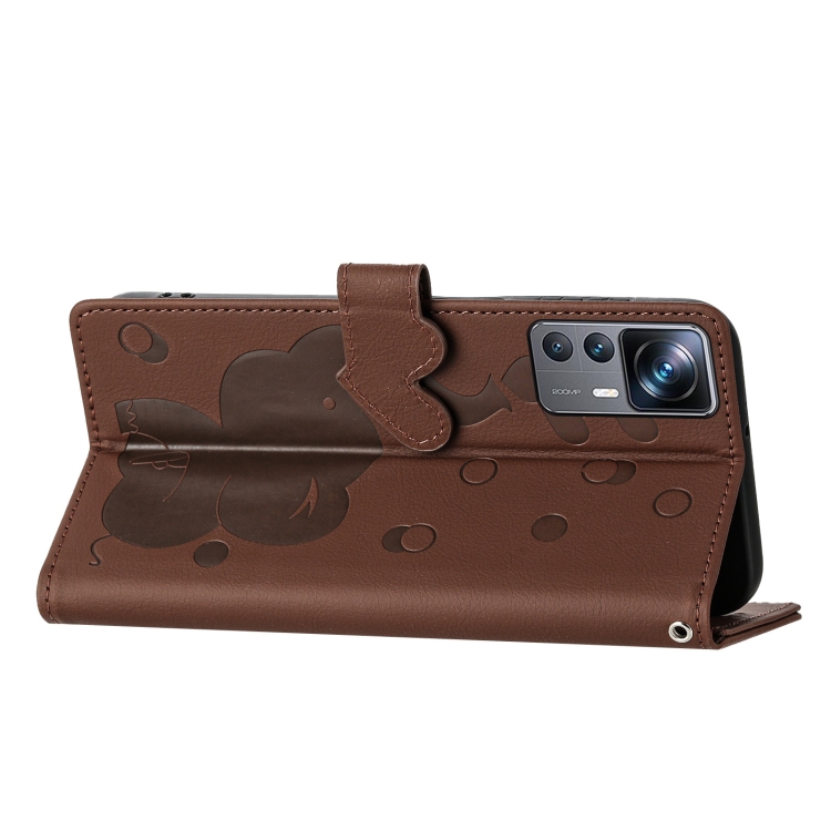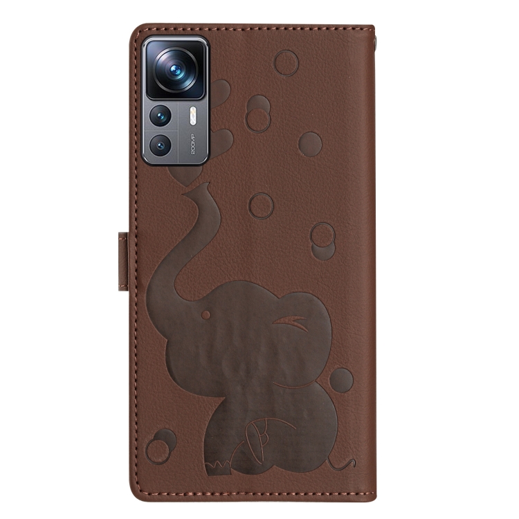Funda de Cuero con Relieve de Elefante de Dibujos Animados para Xiaomi 12T/12T Pro (Marrón)