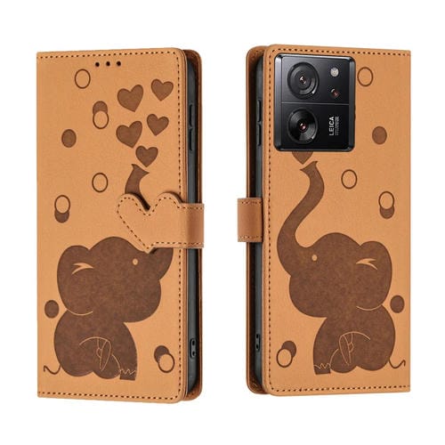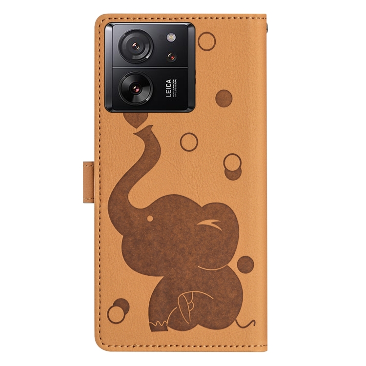 Funda de Cuero con Relieve de Elefante de Dibujos Animados para Xiaomi 13T/13T Pro (Amarillo)