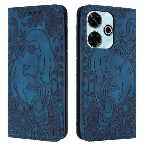 Funda de Cuero con Relieve de Elefante Retro para Xiaomi Redmi 13 4G (Azul)