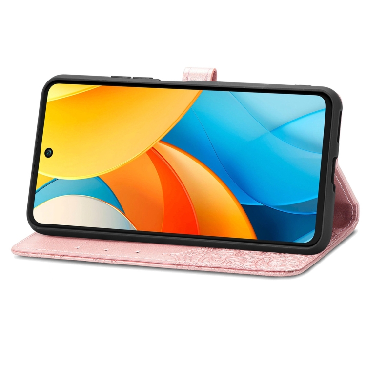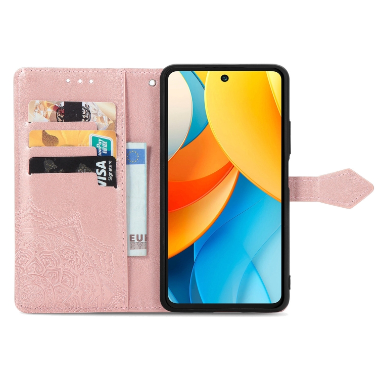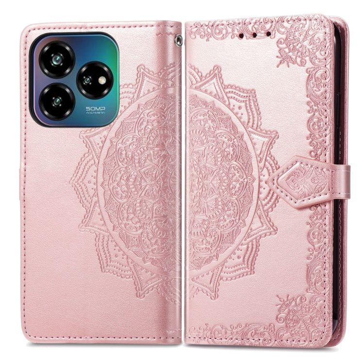 Funda de Cuero con Relieve Flor de Mandala para ZTE Blade V60 Vita (Oro Rosa)