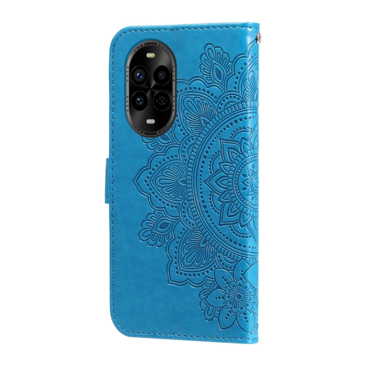 Funda de Cuero Huawei Nova 13 Pro con Relieve de Flores de Siete Pétalos (Azul)