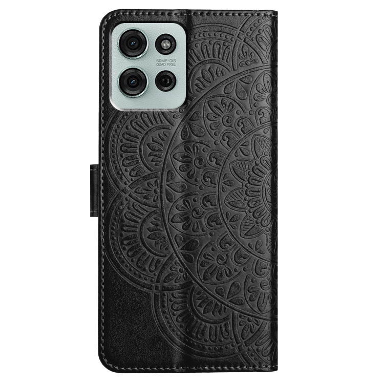 Funda de Cuero con Relieve Floral para Motorola Moto G75 5G (Negra)