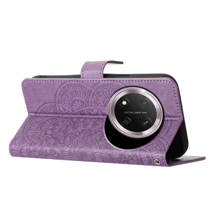 Funda de Cuero con Relieve Floral para Honor X9C (Morado)
