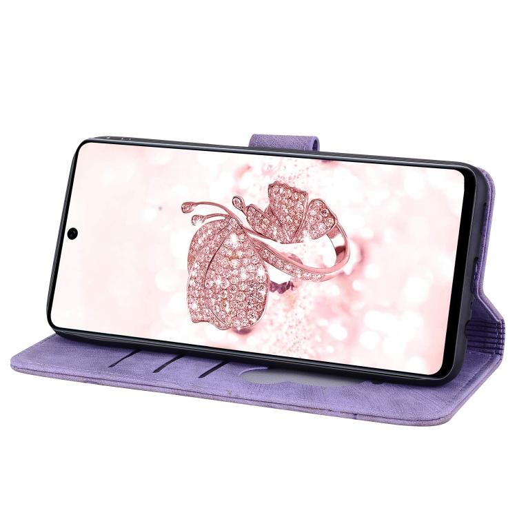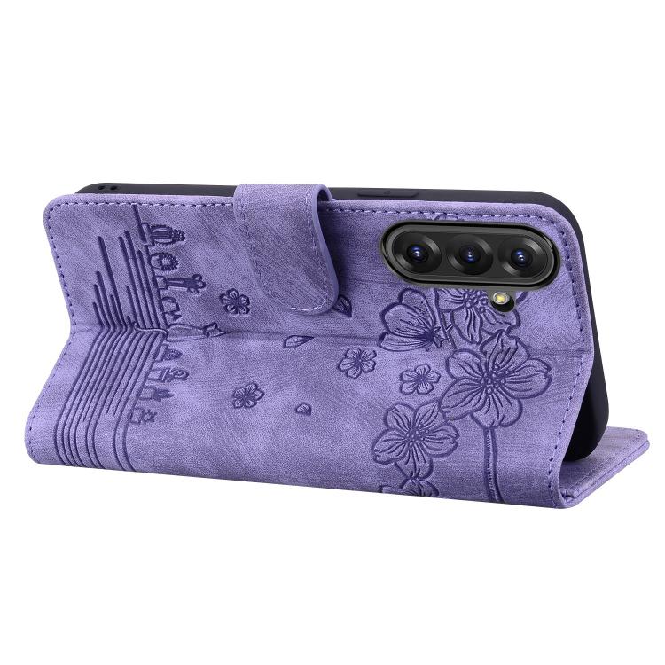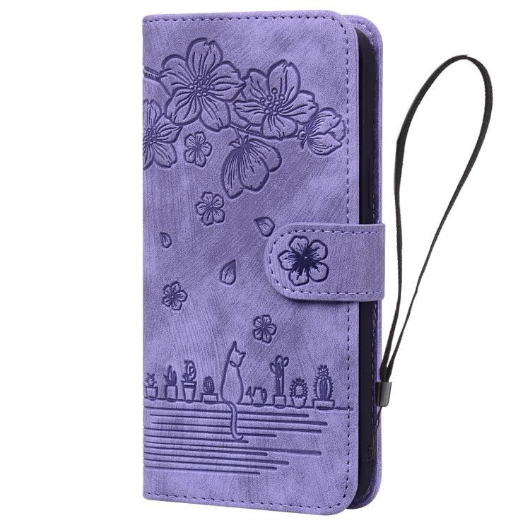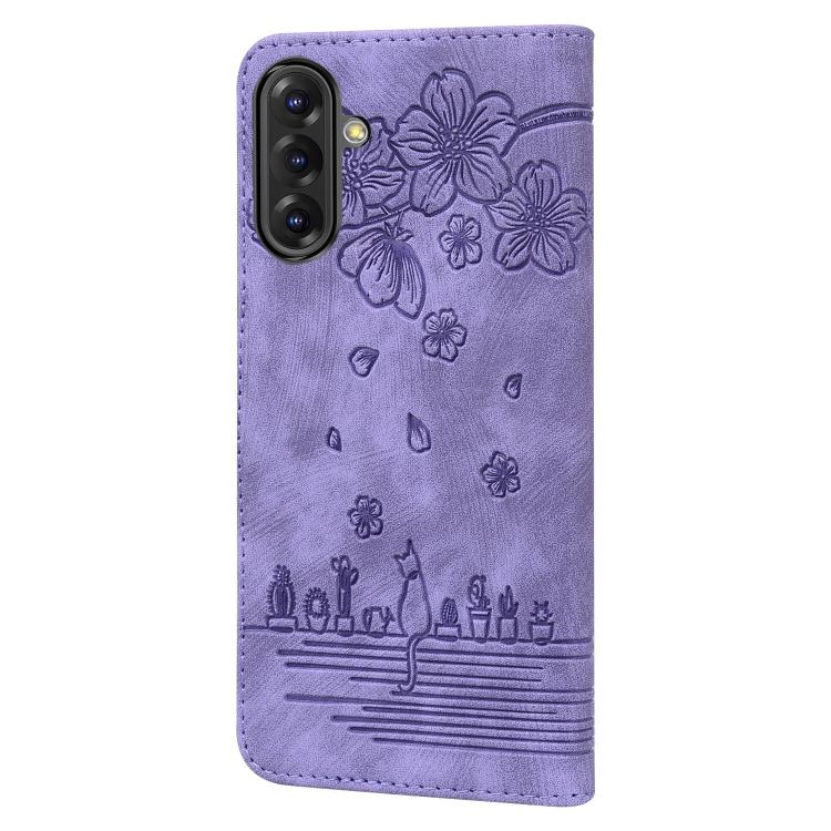 Funda de Piel con Relieve de Gato Sakura para Samsung Galaxy A56/A36 (Morado)