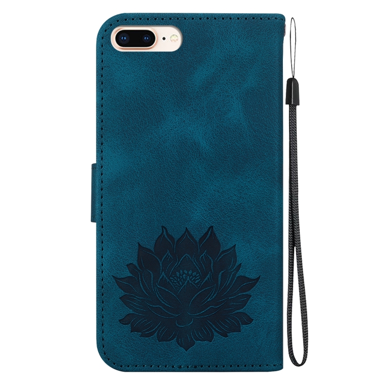Funda de Cuero con Relieve de Loto para iPhone 8 Plus/7 Plus (Azul Oscuro)