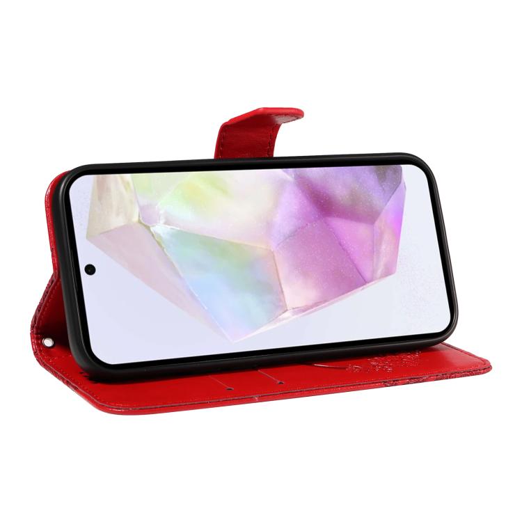 Funda de cuero con relieve de mariposa para Samsung Galaxy A56 5G (roja)