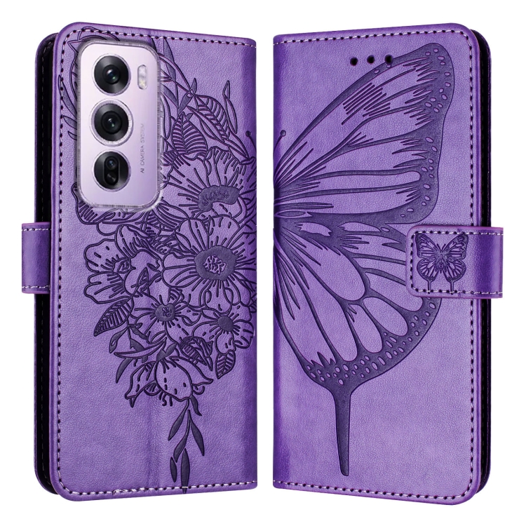 Funda de Cuero con Relieve de Mariposa para Teléfono Oppo Reno12 Pro 5G (Morado Claro)