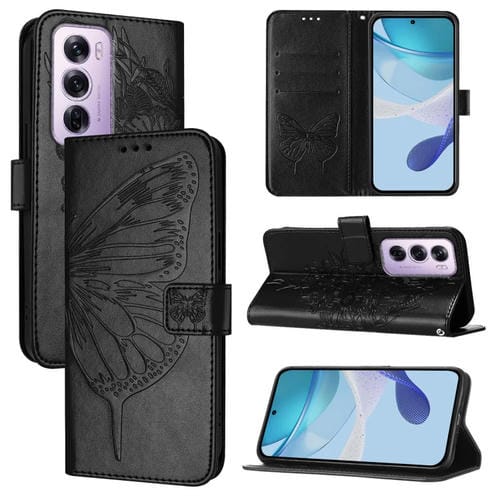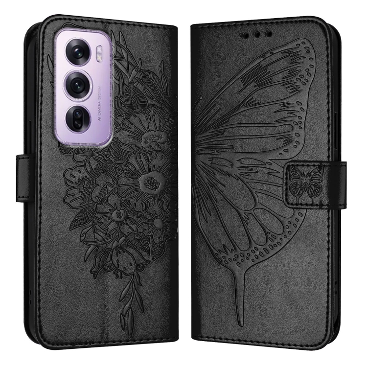 Funda de Cuero con Relieve de Mariposa para Teléfono Oppo Reno12 Pro 5G (Negra)