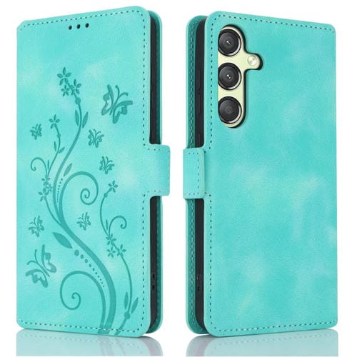 Funda de Cuero Samsung Galaxy A25 5G Global Dreamy Relieve Mariposa y Flor (Verde)