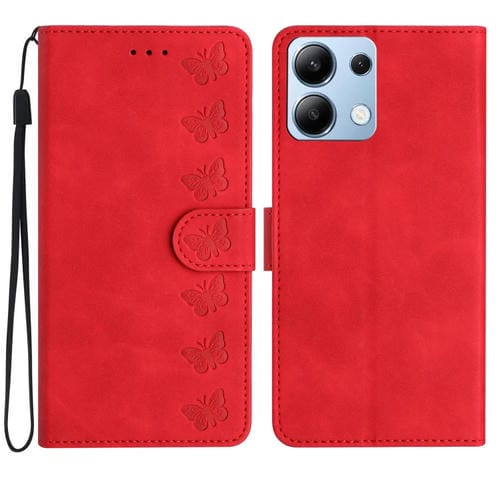 Funda de Cuero con Relieve de Siete Mariposas para Redmi Note 13 4G (Rojo)