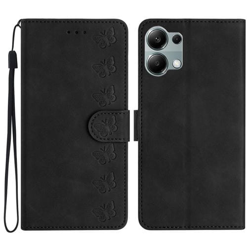 Funda de Cuero con Relieve de Siete Mariposas para Redmi Note 13 Pro 4G (Negra)
