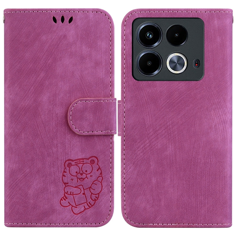 Funda de Cuero con Relieve de Tigre para Teléfono Infinix Note 40 4G (Rosa Rojo)