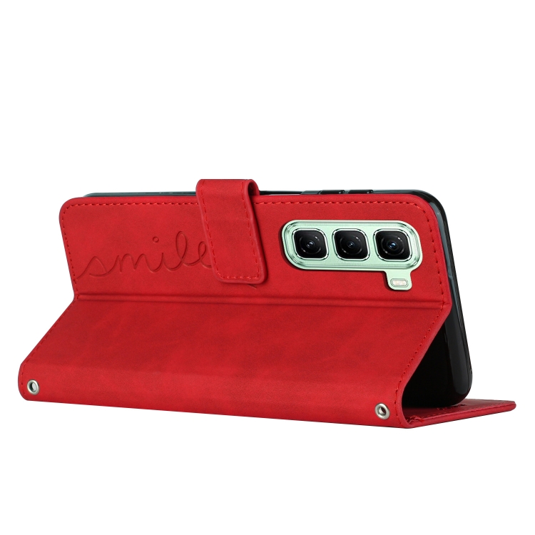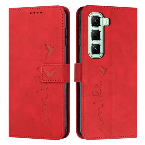Funda de Cuero con Relieve en Forma de Corazón para Infinix Hot 50 5G (Rojo)