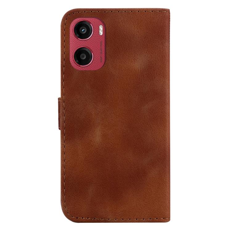 Funda de Cuero con Relieve en Forma de Siete para Motorola Moto G05/E15 (Marrón)