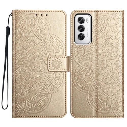 Funda de Cuero con Relieve Floral para Oppo Reno12 Global (Dorada)