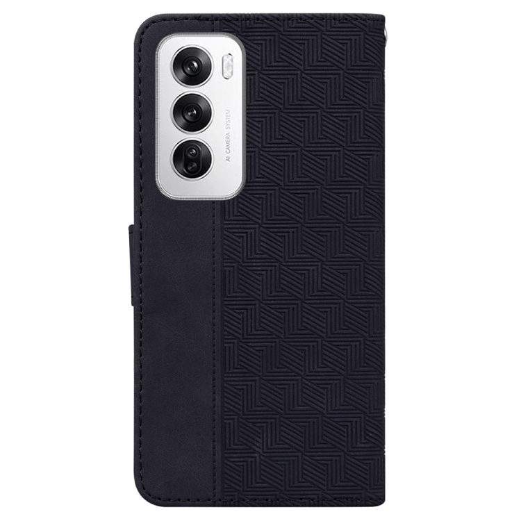Funda de Cuero con Relieve Geométrico Global para Oppo Reno12 5G (Negra)