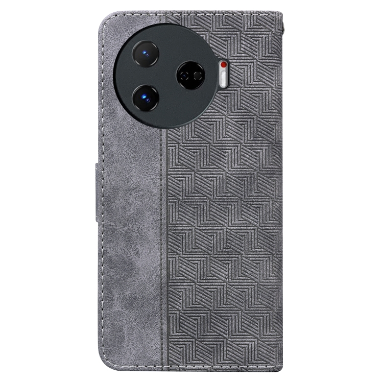 Funda de Cuero con Relieve Geométrico para Tecno Camon 30 Pro Cl8 (Gris)