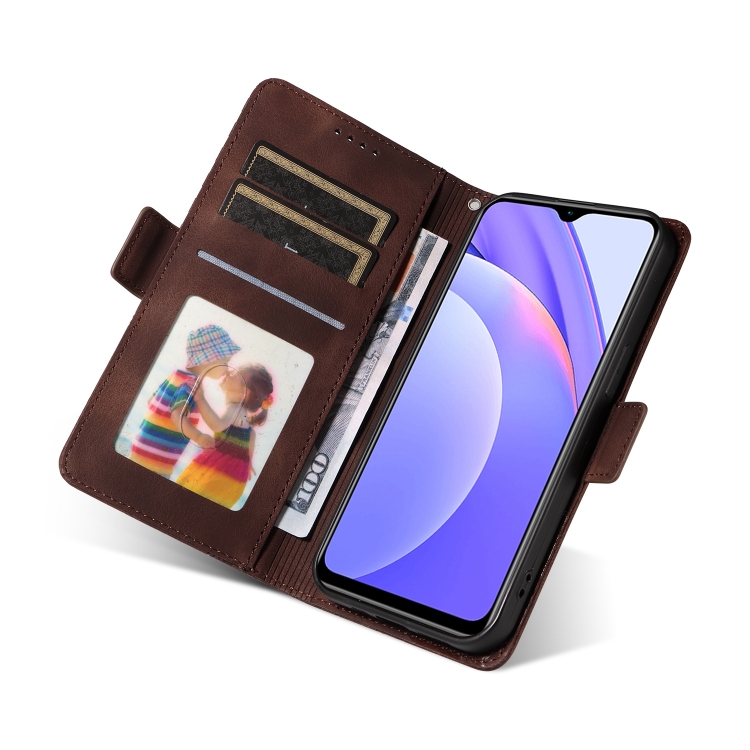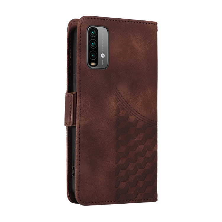 Funda de Cuero con Rombos En Relieve y Estrellas para Xiaomi Poco M3 (Marrón)