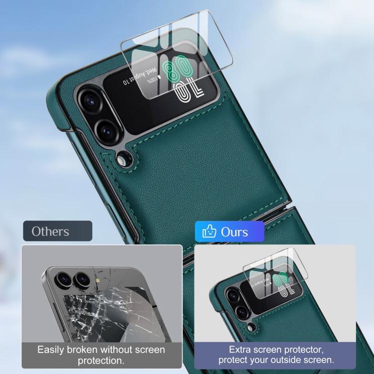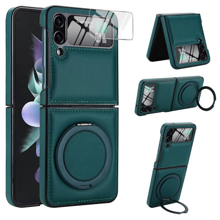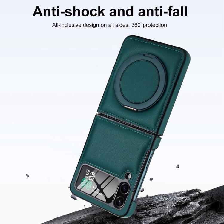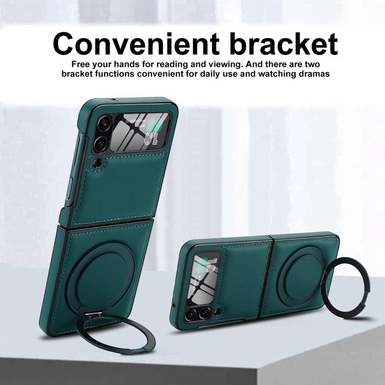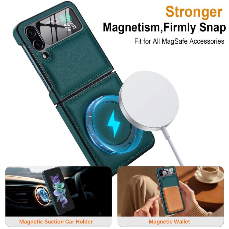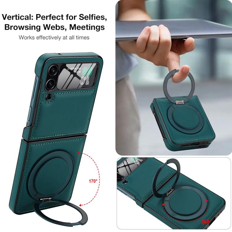 Funda de cuero con soporte giratorio plegable y película MagSafe integrada para Samsung Galaxy Z Flip4 (verde)