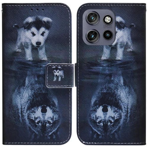 Funda de Cuero con Tapa para Motorola Edge 50 Neo 5G con Dibujo a Color (Lobo y Perro)