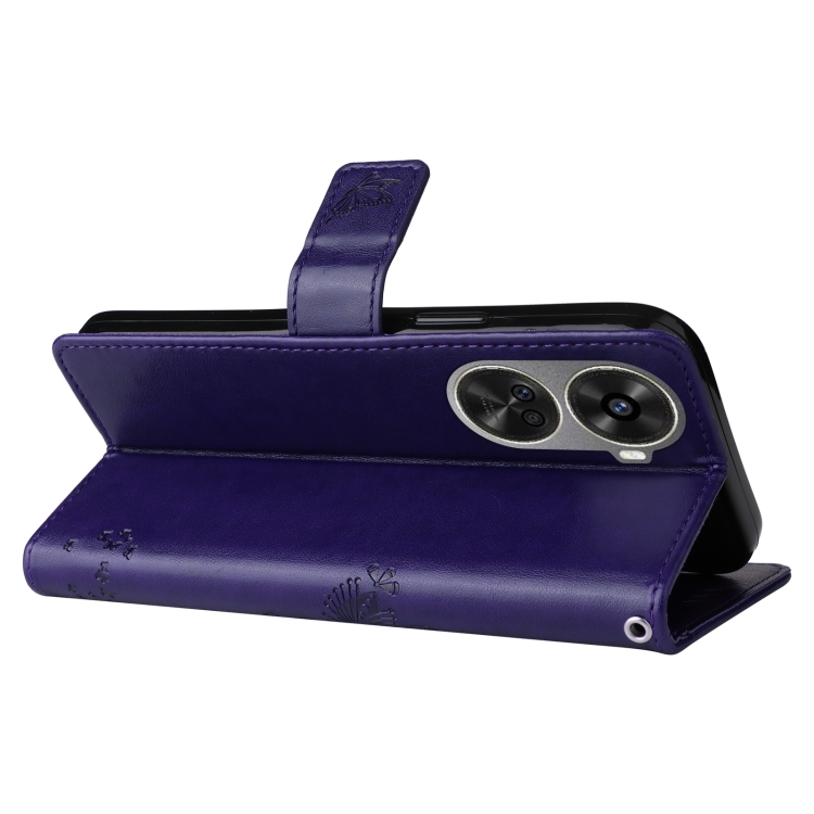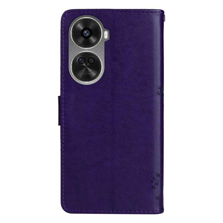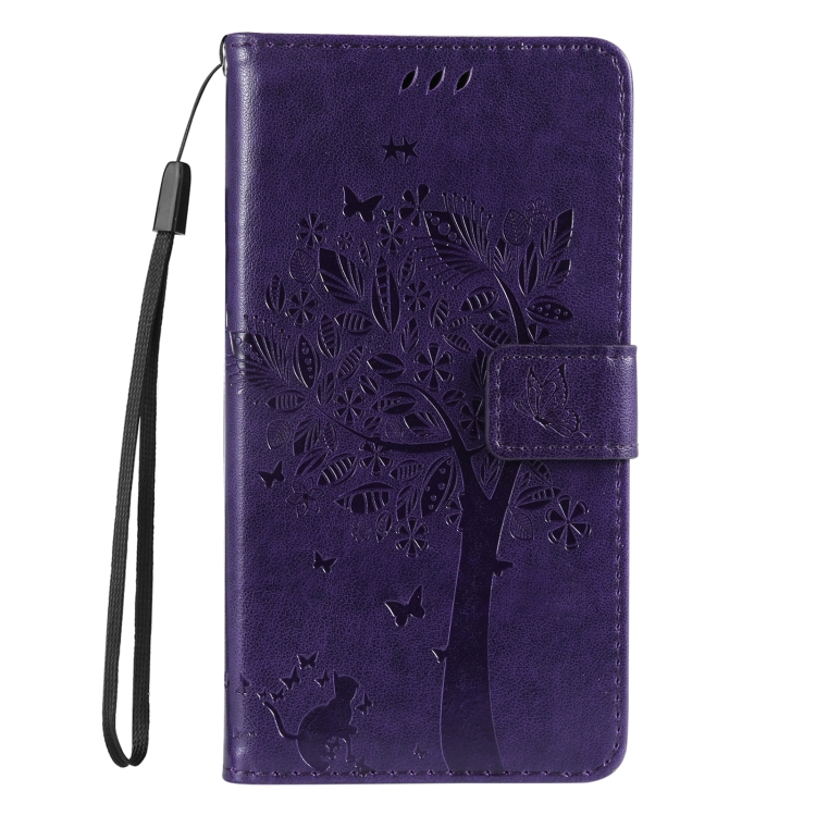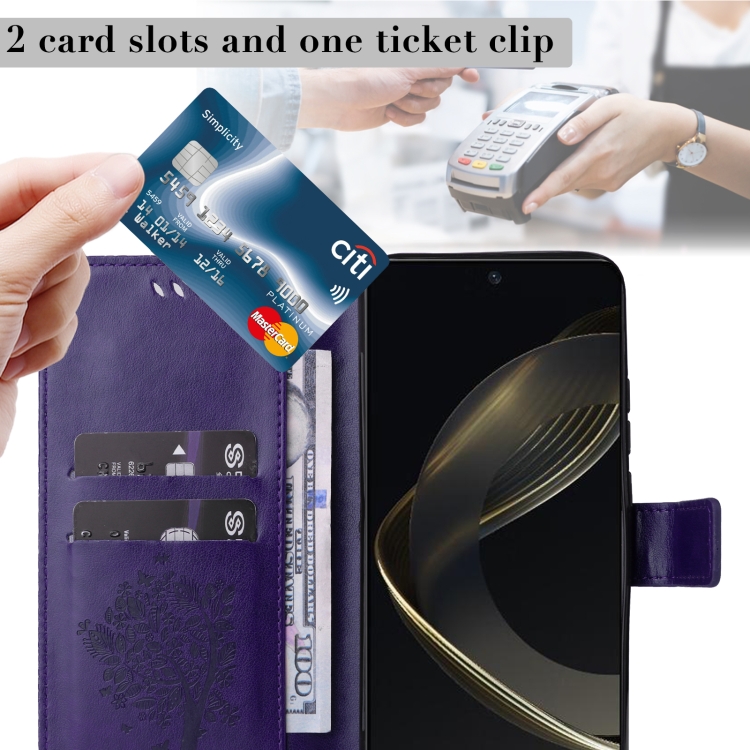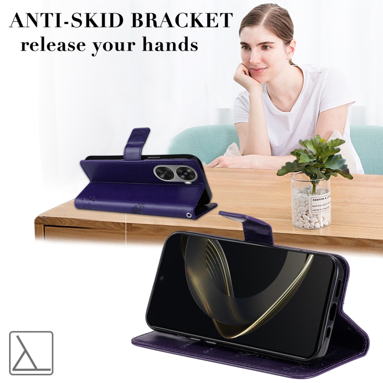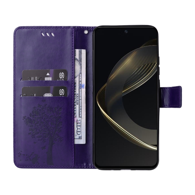 Funda de Cuero con Tapa para Huawei Nova 12 Se y Nova 11 Se con Diseño Árbol y Gato (Morado)