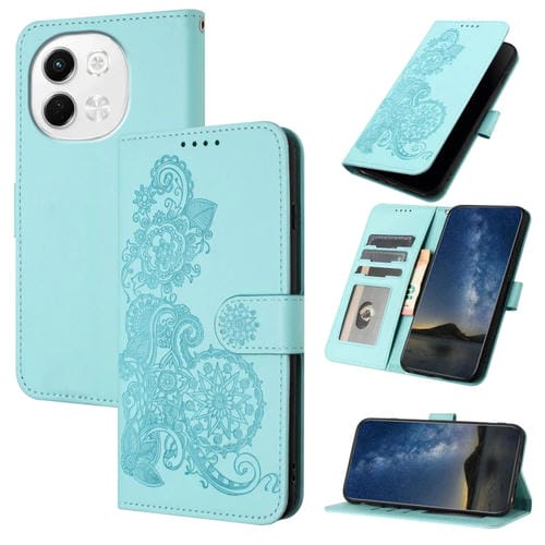 Funda de Cuero con Tapa y Relieve Flor de Datura para Tecno Pova 6 Neo 5G Spark 30 5G (Azul Claro)
