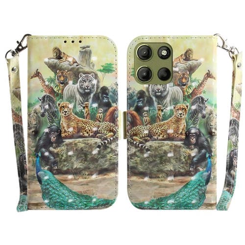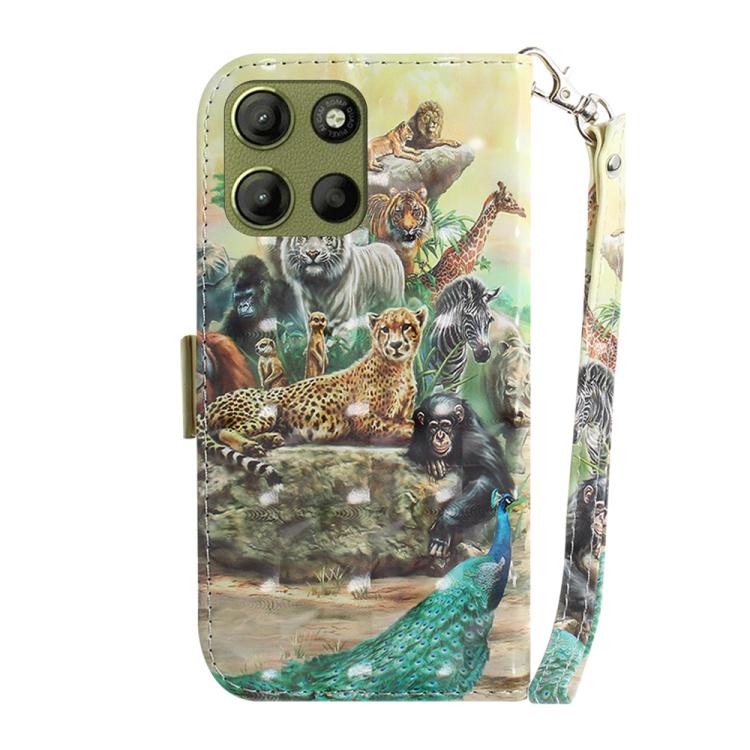 Funda de Cuero con Tapa en Color 3D para Motorola Moto G15 (Zoo)