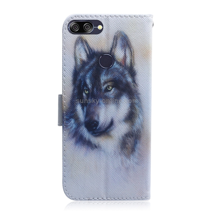Funda de Cuero con Tapa Horizontal y Dibujo de Lobo Blanco para Asus Zenfone Max Plus (M1) Zb570Tl con Soporte y Ranuras