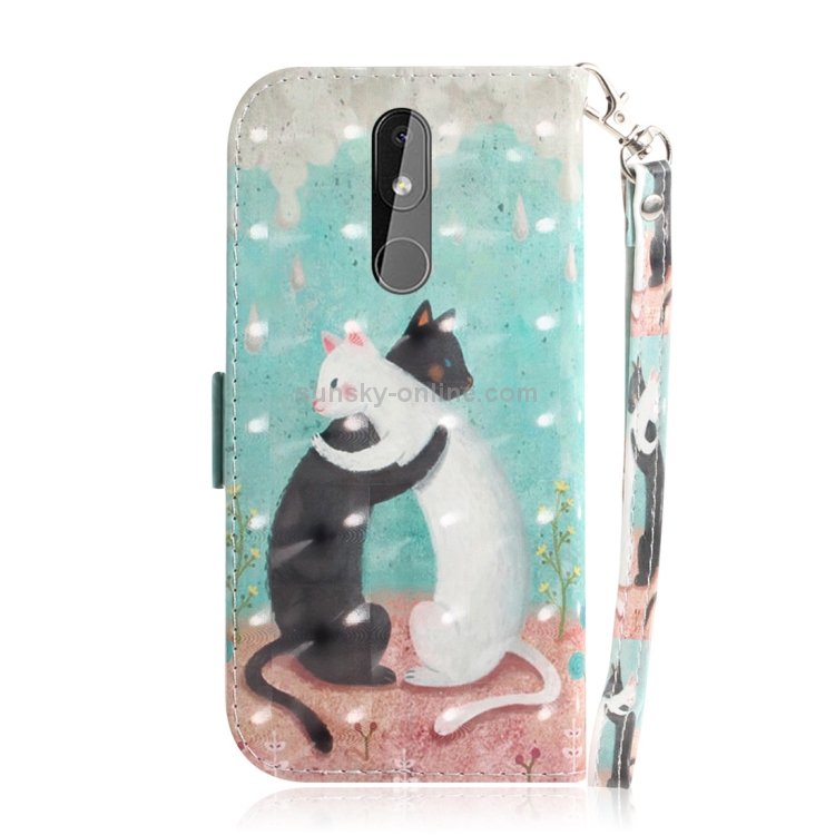 Funda de Cuero con Tapa Horizontal para Nokia 3.2 con Dibujo de Gatos 3D, Soporte, Ranuras y Billetera