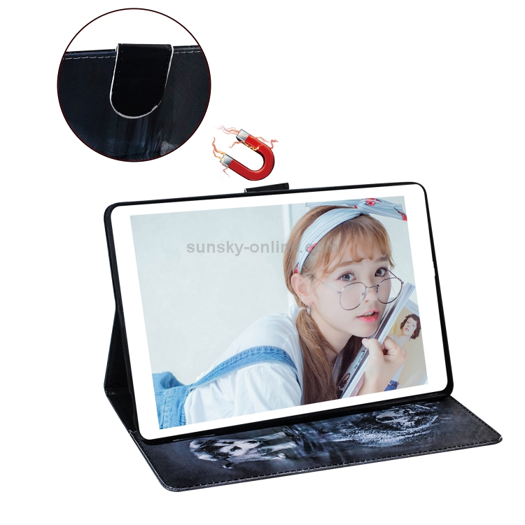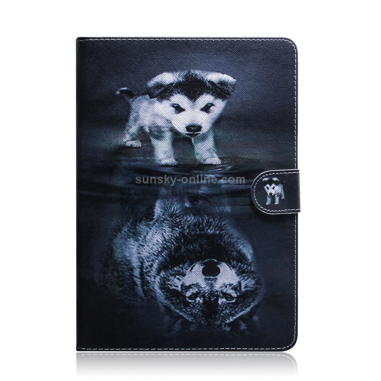 Funda Cuero Galaxy Tab S5E T720 T725 Soporte Ranura Tarjeta Billetera (Lobo y Perro)