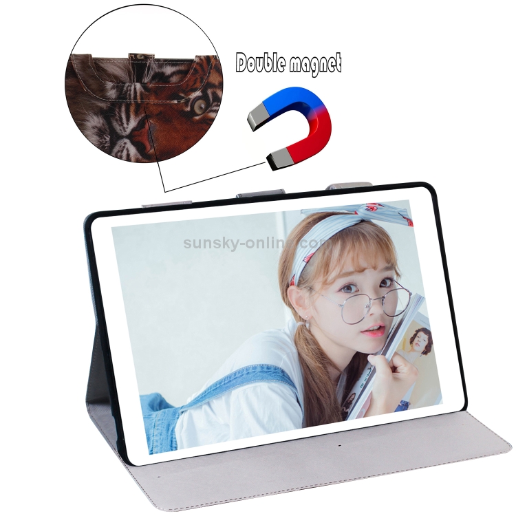 Funda de Cuero para Galaxy Tab a 8 (2019) P200 P205 con Tapa Horizontal Tigre Soporte Ranura Tarjeta Billetera