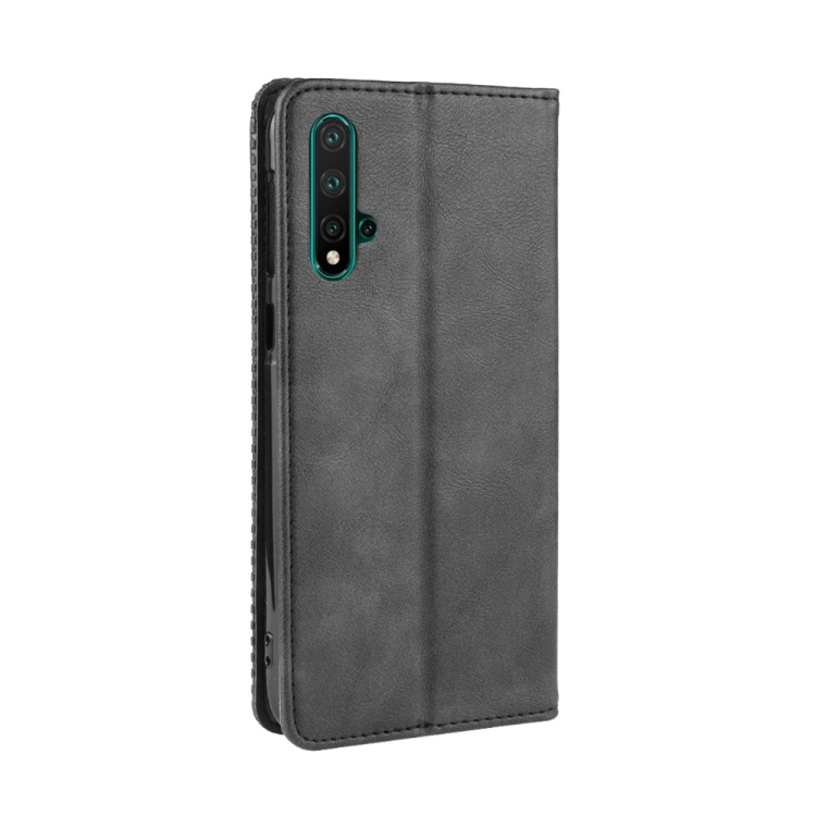 Funda de Cuero con Tapa Horizontal para Huawei Nova 5 y Nova 5 Pro con Hebilla Magnética, Soporte, Ranuras y Marco de Fotos (Negro)