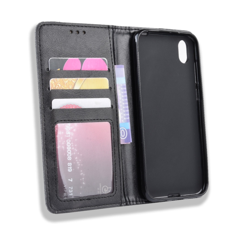 Funda de Cuero con Tapa Horizontal y Hebilla Magnética para Huawei Y5 (2019) con Soporte y Ranuras (Negro)