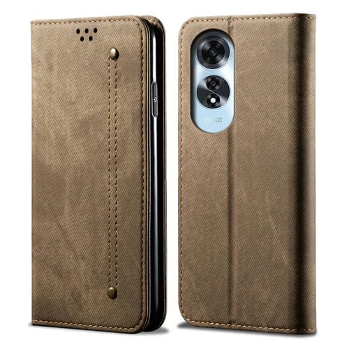 Funda de Cuero con Tapa Horizontal y Textura Vaquera para Oppo A60 (Caqui)