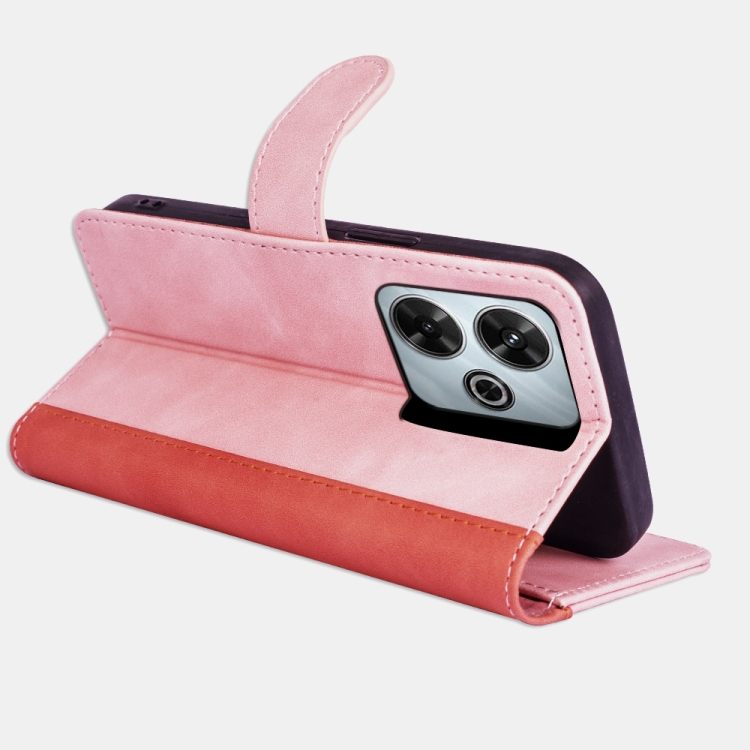 Funda de Cuero con Tapa Horizontal y Costuras para Xiaomi Redmi Note 13R 5G (Roja)