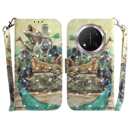 Funda de Cuero con Tapa Horizontal y Diseño 3D para Honor X9C (Zoológico)