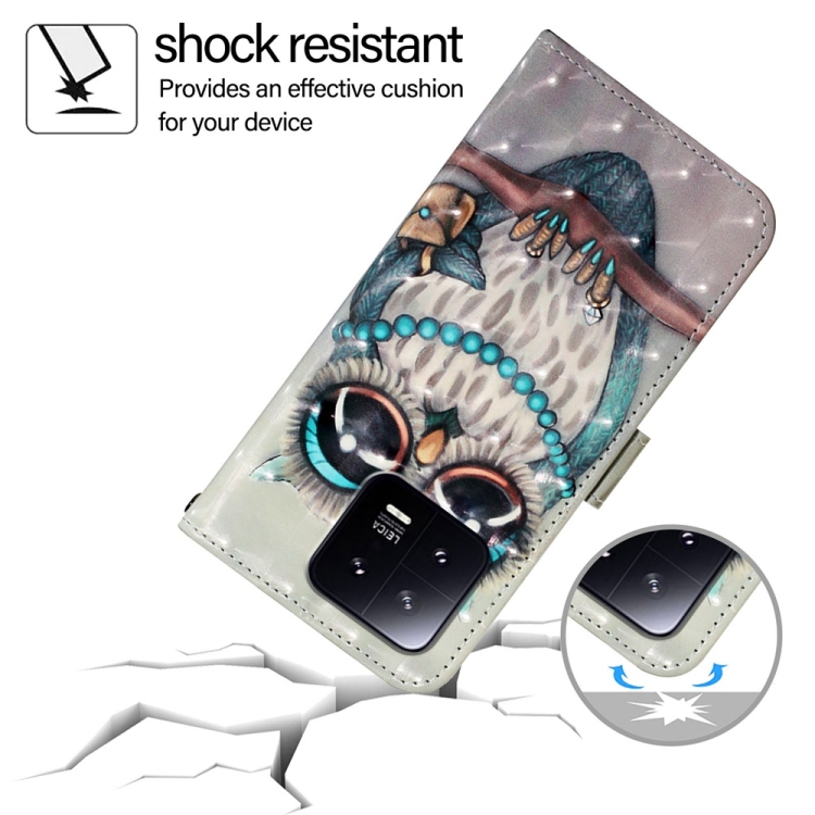 Funda de Cuero con Tapa Horizontal y Pintura 3D para Xiaomi 13 (Búho Gris)