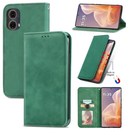 Funda de Cuero con Tapa Magnética y Tacto Retro para Motorola Moto G45 (Verde)
