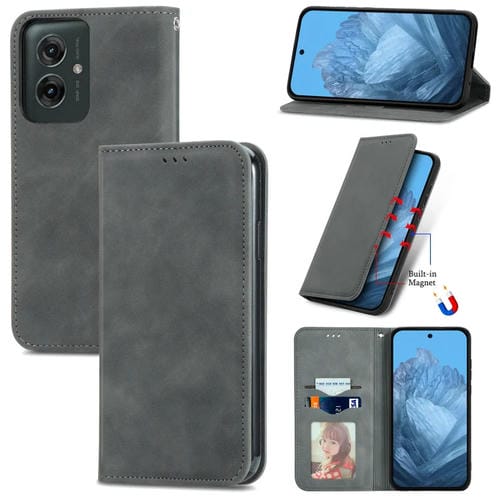 Funda de Cuero con Tapa Magnética para Motorola Moto G55 (Gris)