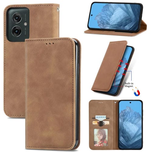 Funda de Cuero con Tapa Magnética para Motorola Moto G55 (Marrón)