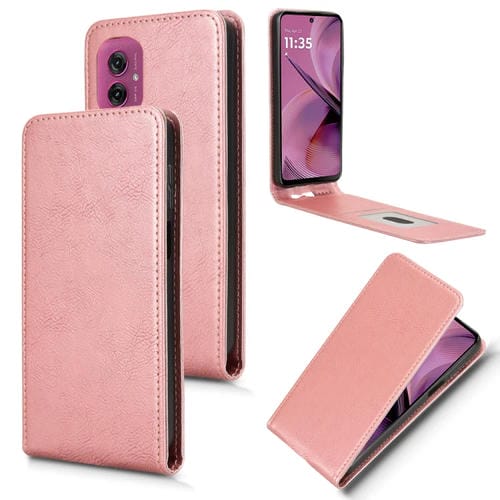Funda de Cuero con Tapa Vertical Magnética para Motorola Moto G55 5G (Oro Rosa)