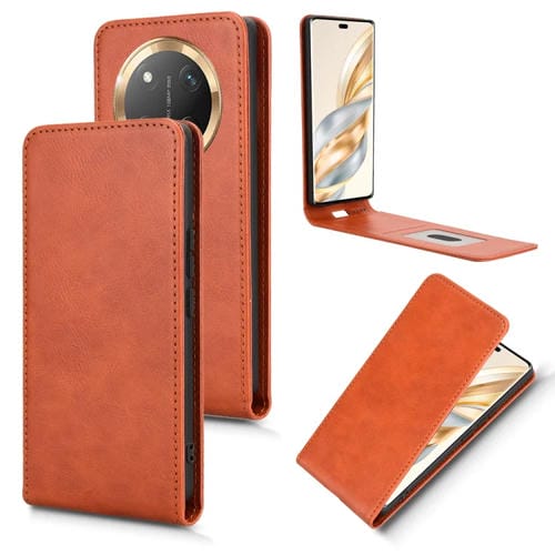 Funda de Cuero con Tapa Vertical Magnética para Honor X60 Pro 5G/X9C 5G (Marrón)