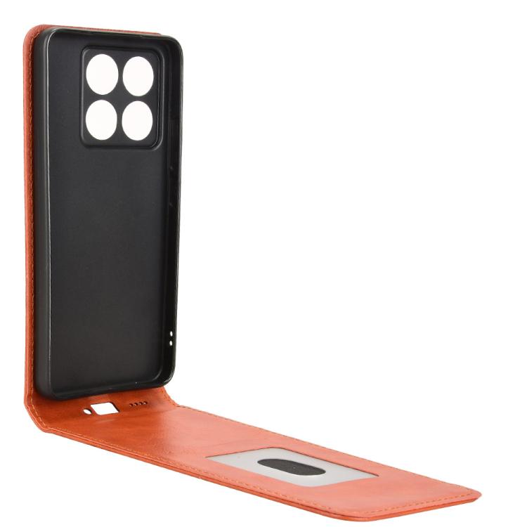 Funda de Cuero con Tapa Vertical Magnética para Teléfono Xiaomi 14T Pro (Marrón)