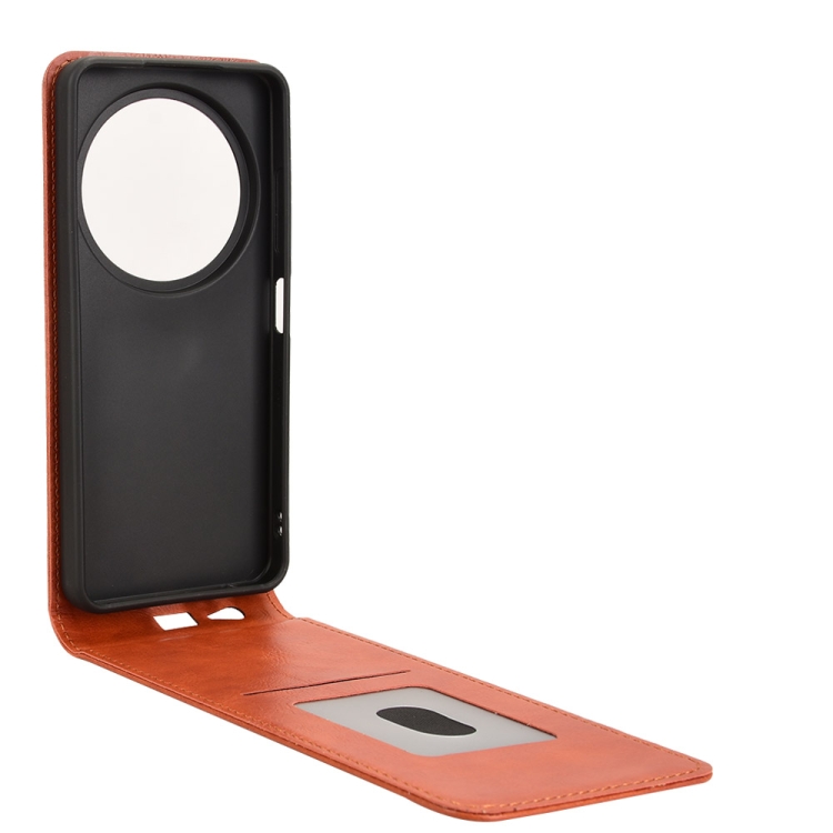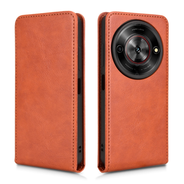 Funda de Cuero para ZTE Blade A75 5G con Tapa Vertical Magnética (Marrón)