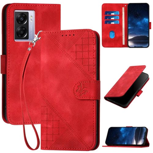Funda de Cuero con Tapa y Cordón para Oppo A57 4G Global Yx0080 con Diseño En Relieve de Mariposa y Cuadrícula (Rojo)