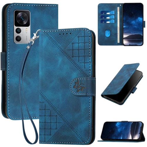 Funda de Cuero con Tapa y Cordón para Redmi K50 Ultra Yx0080 con Diseño En Relieve de Mariposa y Cuadrícula (Azul Oscuro)