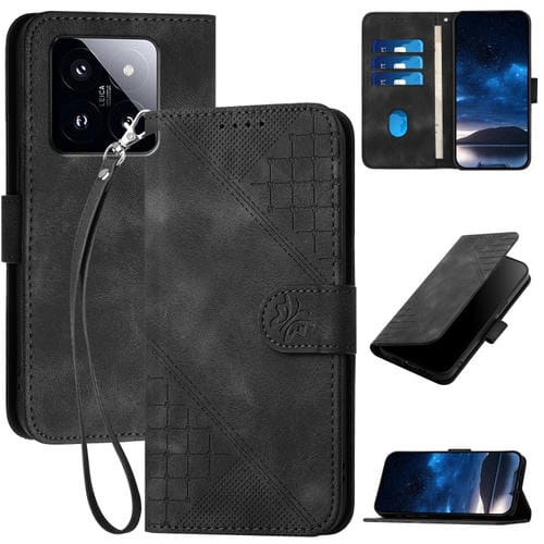 Funda De Cuero Con Tapa Y Cordón Para Xiaomi 14 Pro Yx0080 Con Diseño En Relieve De Mariposa Y Cuadrícula (Negro)