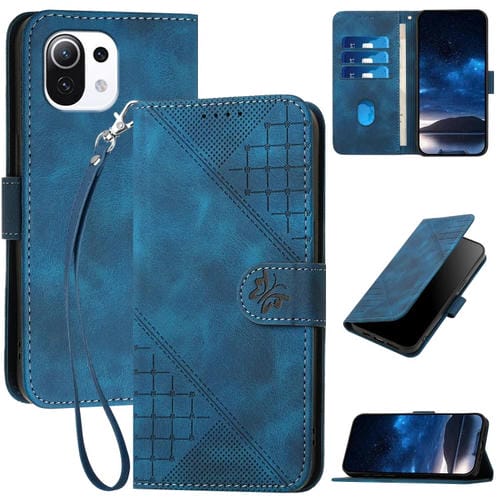 Funda de Cuero con Tapa y Cordón para Xiaomi Mi 11 Lite Yx0080 con Diseño En Relieve de Mariposa y Cuadrícula (Azul Oscuro)
