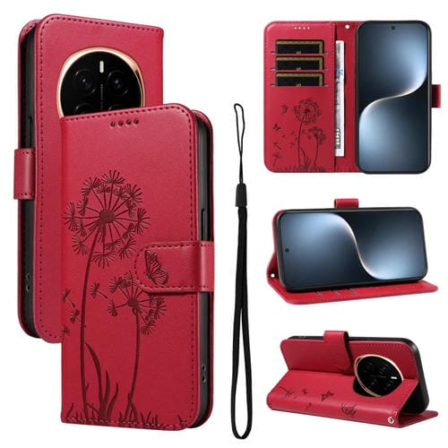Funda de Cuero con Tapa y Estampado Diente de León para Honor Magic7 5G (Roja)